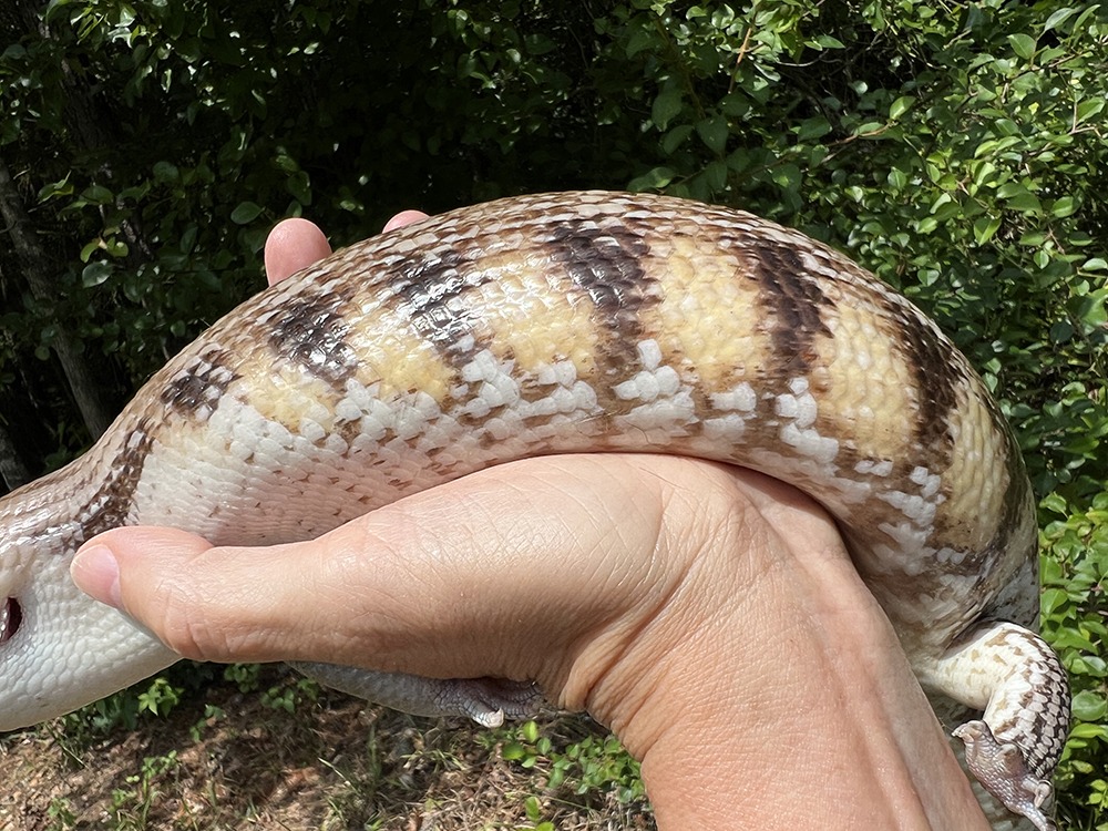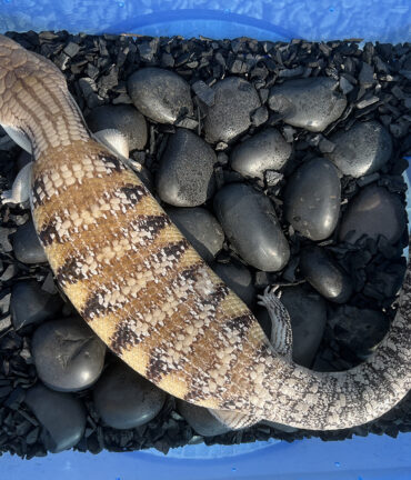 Blizzard is a lightly colored skink, with the lineages of – Turner White/Sunrise outcross/red/Sunrise/white. I purchased him from Blazin’ Blue Tongues. He was born in spring 2020. Blizzard likes to stay chill and hide. He is a feisty fella – I try to never wake him up when he is sleeping!