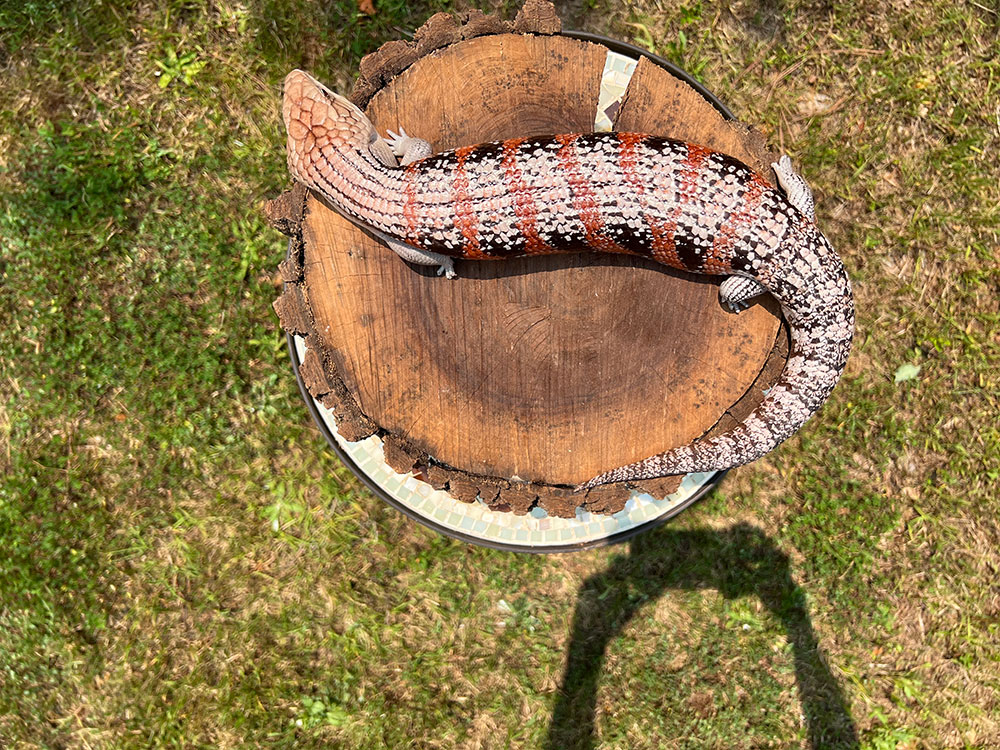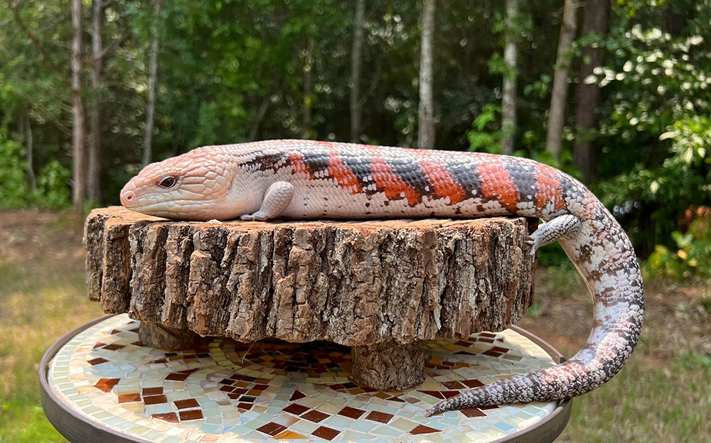 Wesselina, This beautifully colored skink was born in spring 2020. I purchased her from James Fenn. She is one of only two born that year of this particular morph – Magma x Red. I feel very blessed to have such a special and sweet skink! Her babies are usually marked vibrantly! They have beautiful dispositions to match.